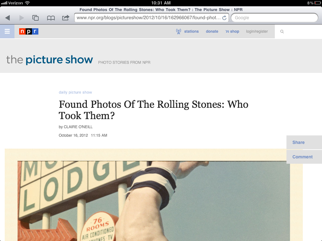Subsequently, we began to implement responsive techniques in a some corners of our site. NPR Mobile Technology Manager Jeremy Pennycook led the charge. About a year ago, NPR Music introduced live event pages that support desktop browsers, iPads and iPhones. Early in 2012, the overall site made a change that optimized stories on the iPad for a better reading and listening experience.