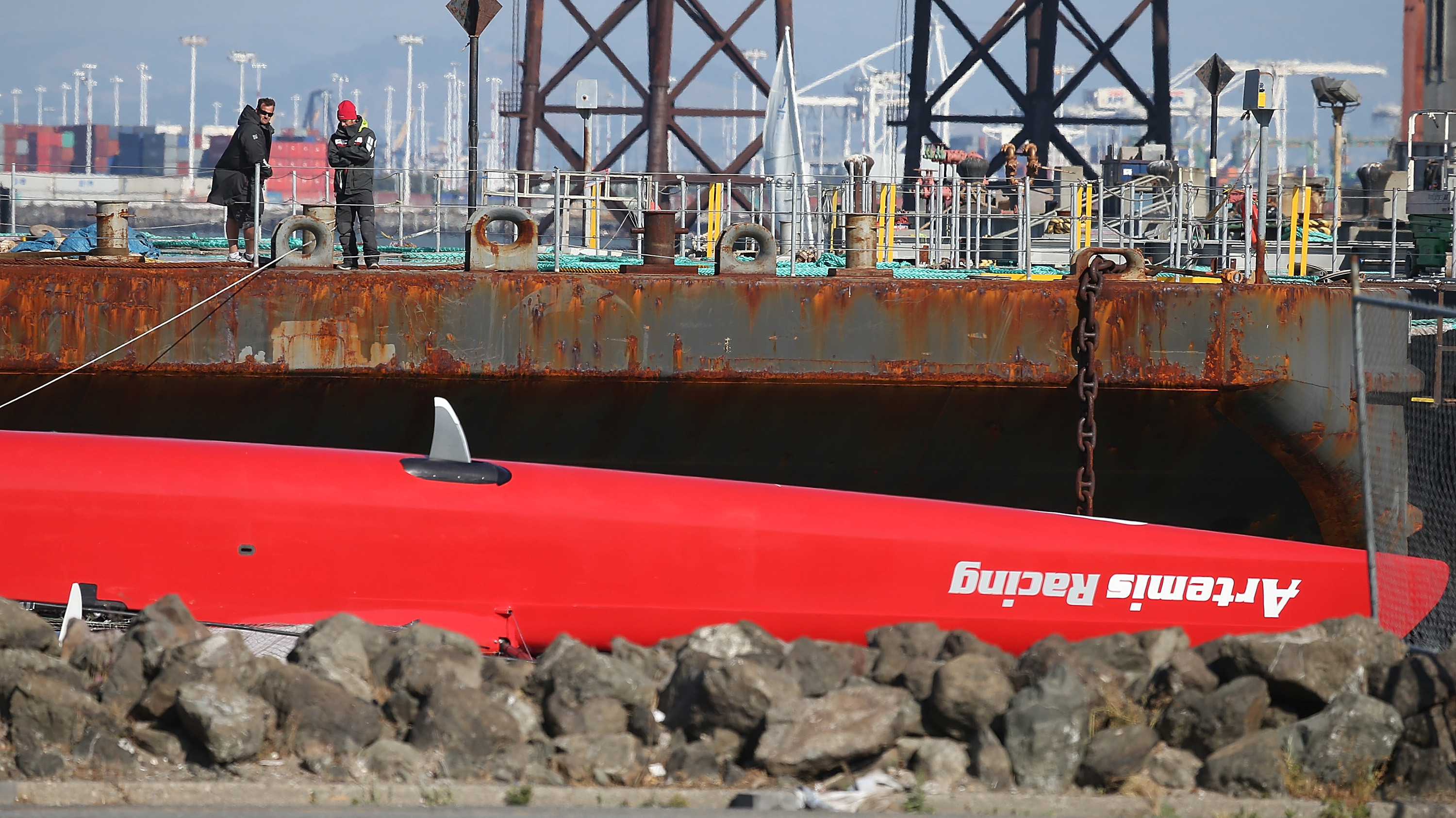 "Members of the America's Cup community are on San Francisco Bay assisting Artemis Racing after the capsize of its first AC72 catamaran. The incident occurred between 12:30 pm and 1:00 pm PT.