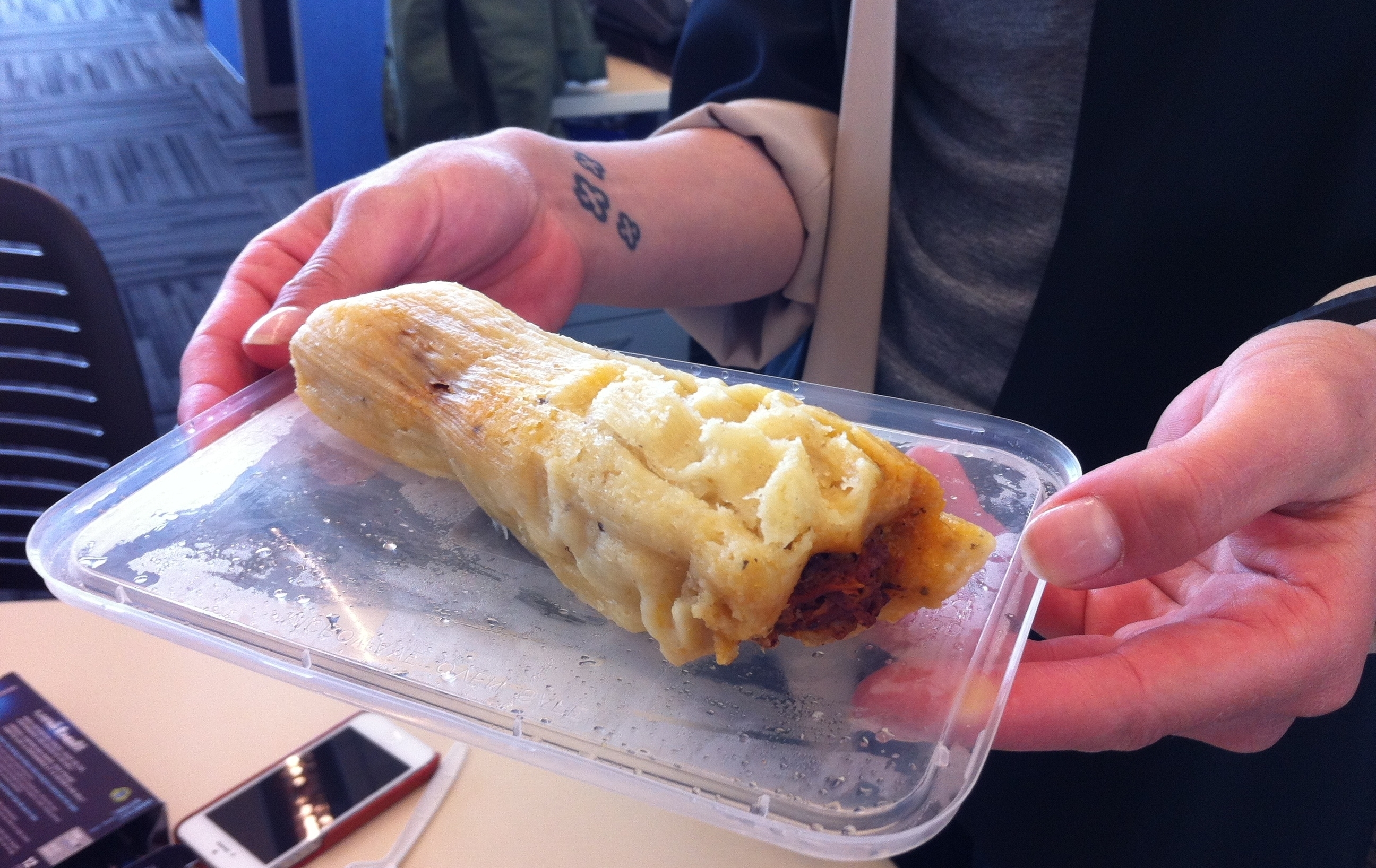 [The verdict: Four dollars per tamale is steep, but that's about 1/1 millionth of what it costs to go to space as a space tourist. So consider it a good deal. Also, they're enormous.]