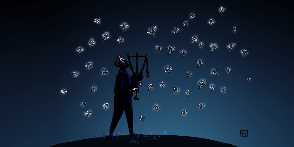 FAIRY: Oh my goodness! It isn’t everyday we’re graced with the presence of the finest Piper in the land! Please, Piper, come down and play for us!