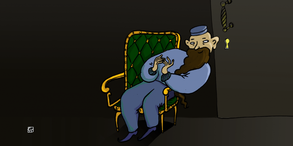 Yet the truth is… that’s not all Lemml was doing. When people saw him drifting through the palace, he was actually... sneaking around, trying to spy on his fellow advisers! And when people saw him lazing about on velvet chairs, he was actually cocking his head toward the wall... straining his ears to listen in on the advisers’ meetings going on in the next room!