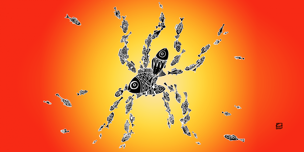NARRATOR: Having skipped out on yesterday’s fish, Anansi was getting hungry. But why settle on just four fish when he could have eight?
