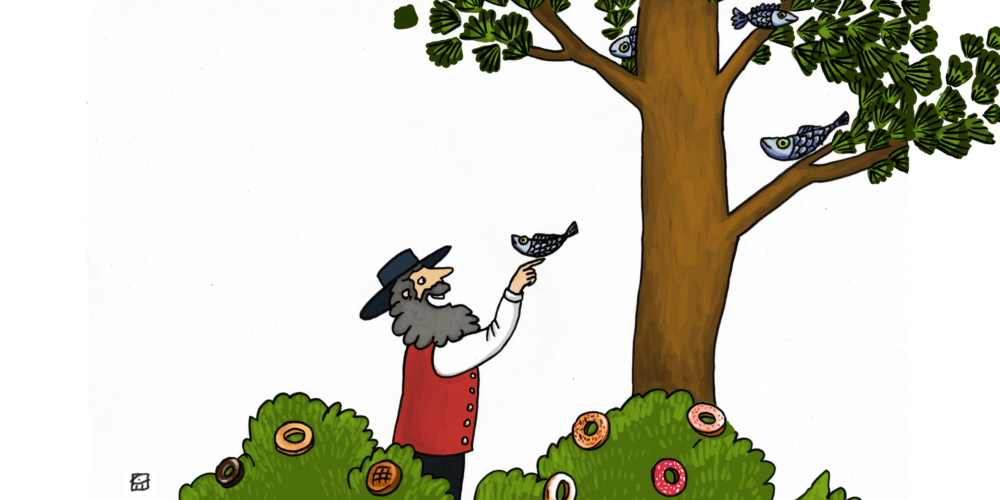 Donuts on bushes… fish in trees… cheese in traps… what do you think Oscar the fisherman has up his sleeve? We’ll find out, after a quick break.