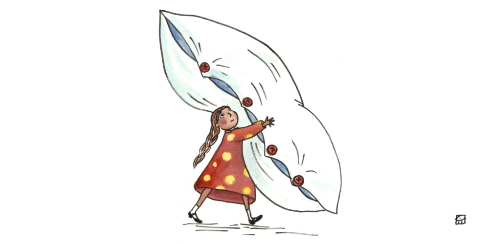 NARRATOR: Mama reached down under her sewing machine, and handed Maya… a big, feather pillow.