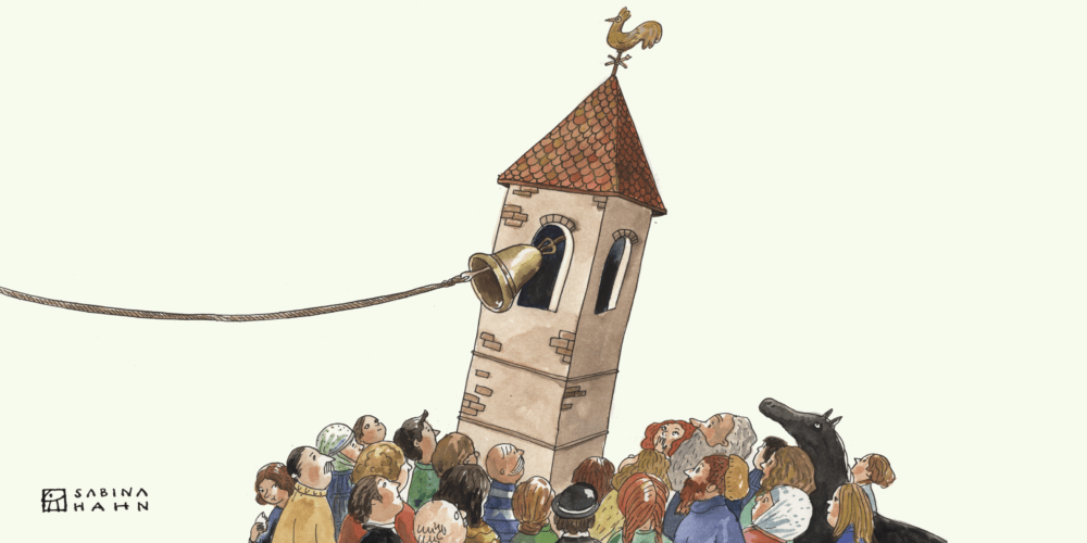 NARRATOR: The moment the people reached the town square, they froze right in their tracks. Because all of a sudden, they discovered that the “someone” who had rung the bell was none other than…