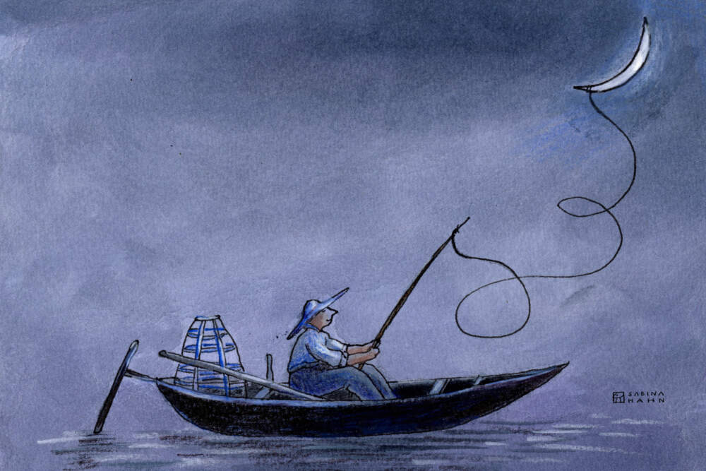 FISHERMAN: I see the sky… and the stars… and the moon, of course! Big and full and round!