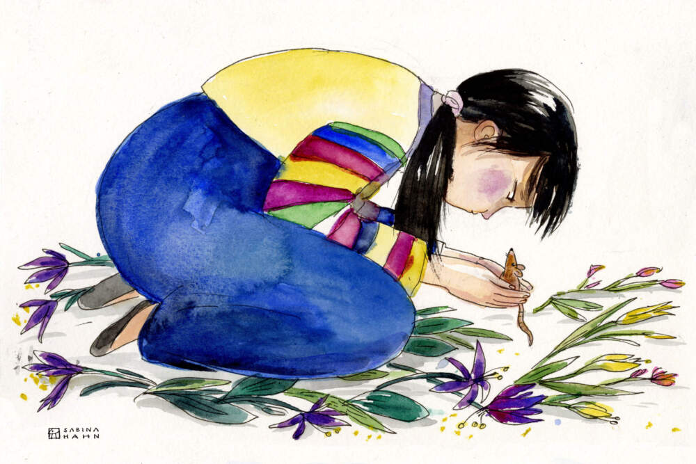 NARRATOR: The ravenous workers eagerly gobbled the rice, then invited Yoonah to pick as many flowers as she could carry.