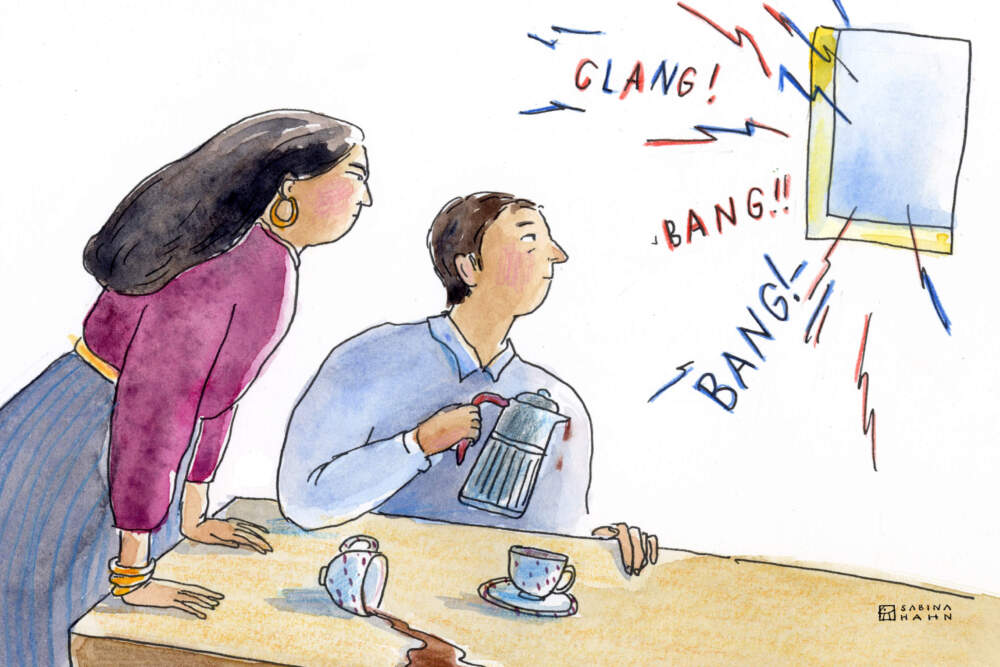 NARRATOR: The president’s head was ringing and her heart was raging as she rushed back to the place and told her husband about their noisy neighbors.
