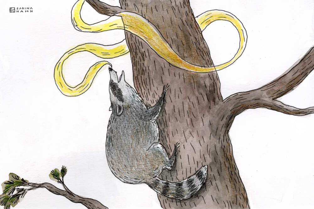 NARRATOR: Raccoon couldn't see through the leaves, but she knew Opossum’s voice when she heard it.