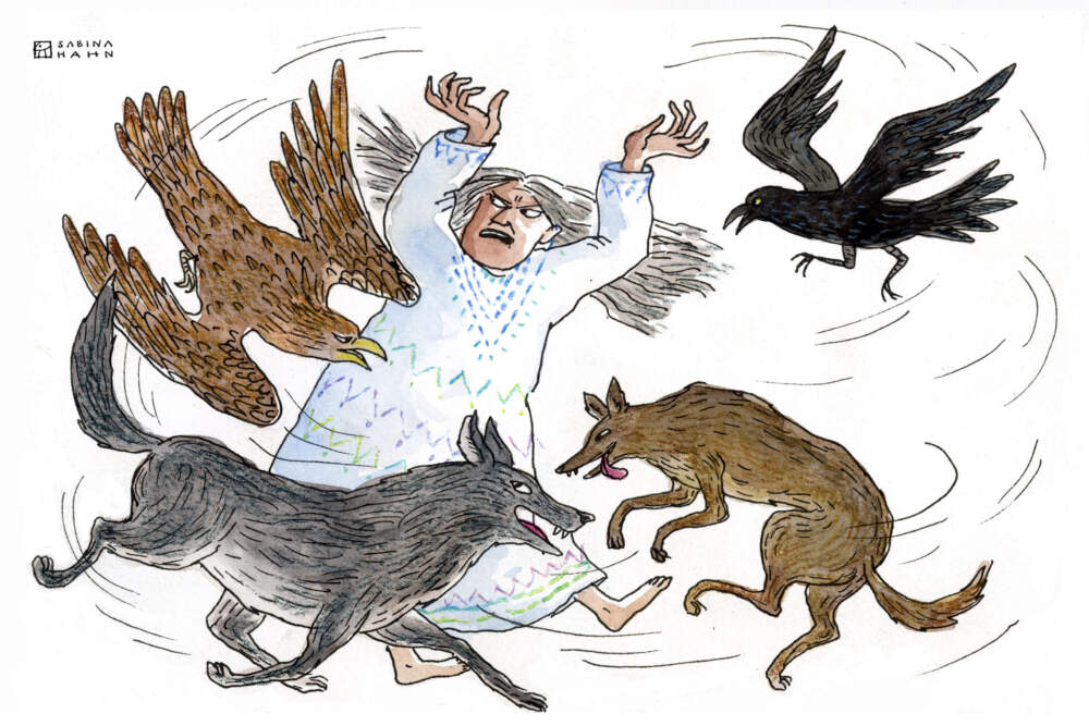NARRATOR: Howl after howl pierced the air, until – just as the animals hoped –
