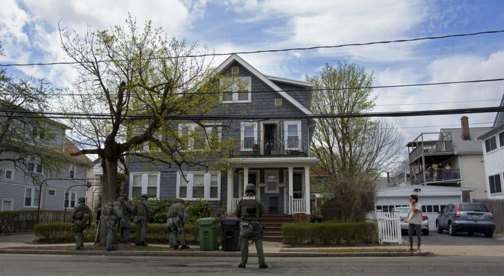 We were on lockdown. One Boston Marathon bombing suspect had been killed during the night just over a mile from our home, and the barrage of gunfire and explosions had woken the children. (What were those fireworks last night? they wondered when they stumbled sleepily from their bedrooms.) The other suspect was on the loose.