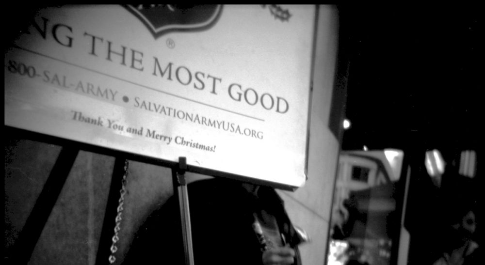 “Do you get paid for this?” I asked the man ringing the bell for the Salvation Army.