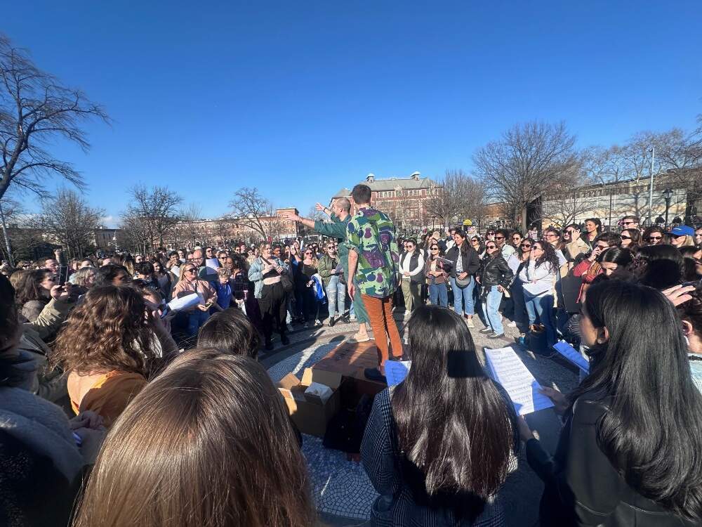Back in the warehouse, I let those lyrics wash over me. I felt them washing over all of us. “You should be so happy now” became a galvanizing punch in our collective gut. The sound swelled, 400 people singing with full hearts (and mostly on key). Any nerves were gone, replaced by chills. After three hours of practice we were ready to sing it one final time — outside, in a park, for the public.
