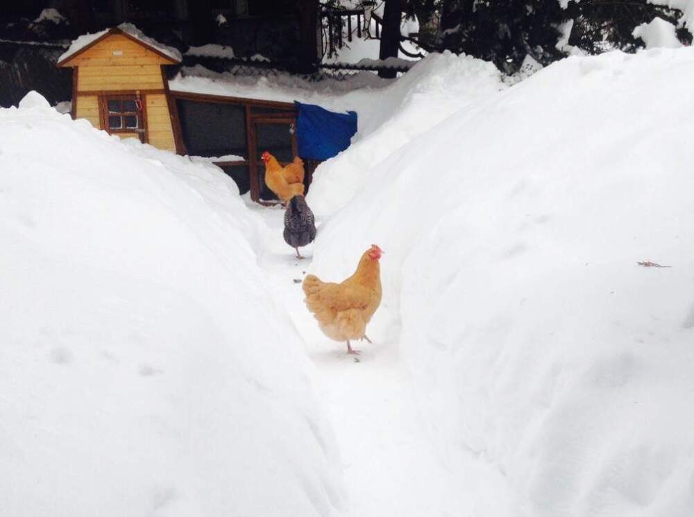 Yes, I had chickens in 2015. Three hens, to be specific, who lived in a coop next to the driveway and wandered around our backyard in the mornings, clear-cutting the vegetation and searching for worms. They were hardy New England breeds with thick feathers and fat bottoms. They had no need for sweaters or space heaters. Our biggest challenge, most winters, was rigging up a hot plate to keep their water bowl from freezing over.