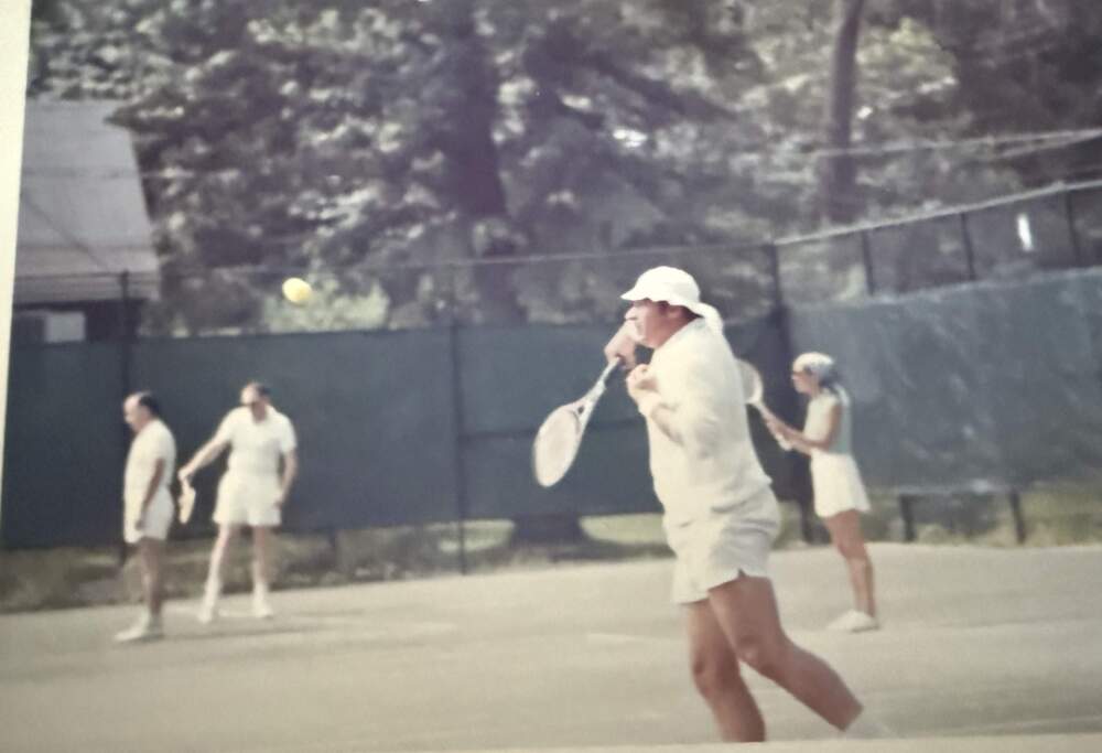 Around the age of 10, I played with Dad in the late afternoons just before dinnertime, when he was finished with his real matches with his club friends. “Let’s have a private lesson” he would say with a wink. I remember loving the one-on-one time with him, just us two on the court, hitting the white Wilson ball back and forth. I took lessons at a summer day camp, but within a year or so, I lost any real interest in playing the game.