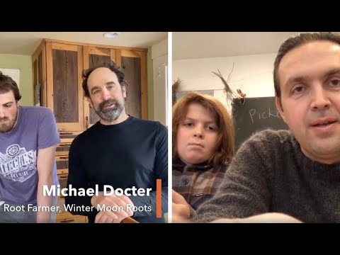 With all Clover Food Lab locations temporarily closed until further notice, Muir has launched In Ayr’s Kitchen, a live cooking show from his home. Here he is making quick pickled vegetables with virtual guests Michael Docter of Winter Moon Roots and Jesse Docter of Oleana below.