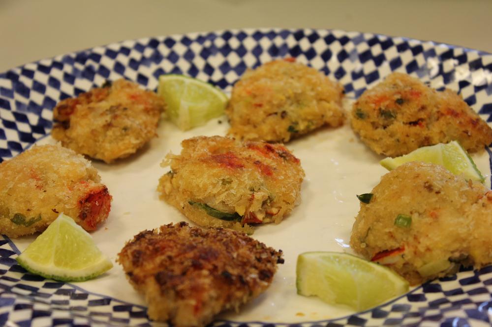 Heat about 3 tablespoons of the remaining lemongrass oil in a large skillet over moderate heat. When hot, add the lobster cakes and cook about 3 to 4 minutes per side, or until golden brown and cooked through. If the pan seems to be drying out add an additional tablespoon or two of the lemongrass oil. Serve hot with a wedge of lime.