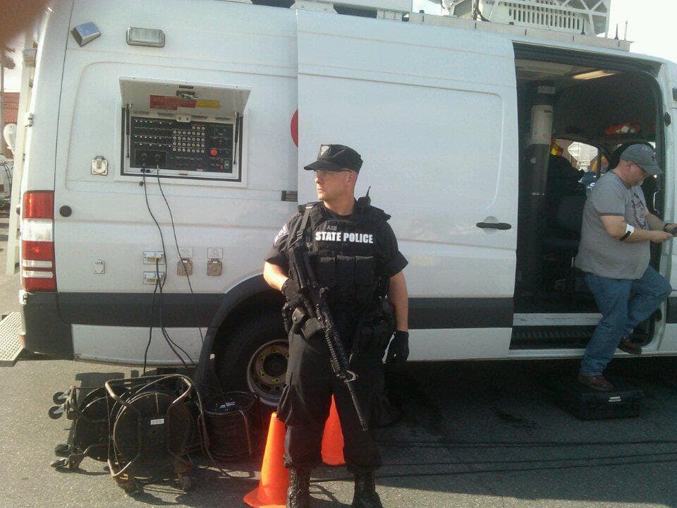 A bomb-sniffing dog checked the media equipment where we were set up. Many communities, including Watertown were already on lock down. State Police Colonel Timothy Alben spoke to reporters on the scene: "I want to be clear. This situation is grave. We believe these are the same individuals that were responsible for the bombing on Monday at the Boston Marathon. This is a very serious situation that we are dealing with."