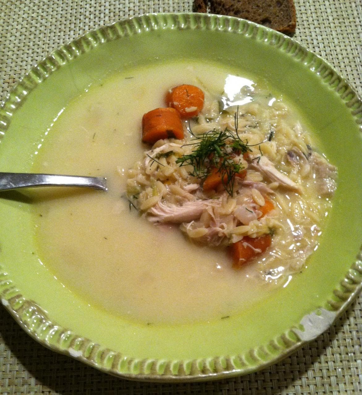 Kathy’s Note: This soup is a great way to use leftover chicken stock or turkey stock. The stock is simmered with fresh lemon juice, cream, fresh dill, and egg yolks to create a soothing comforting soup. Orzo or rice is added to thicken the soup.