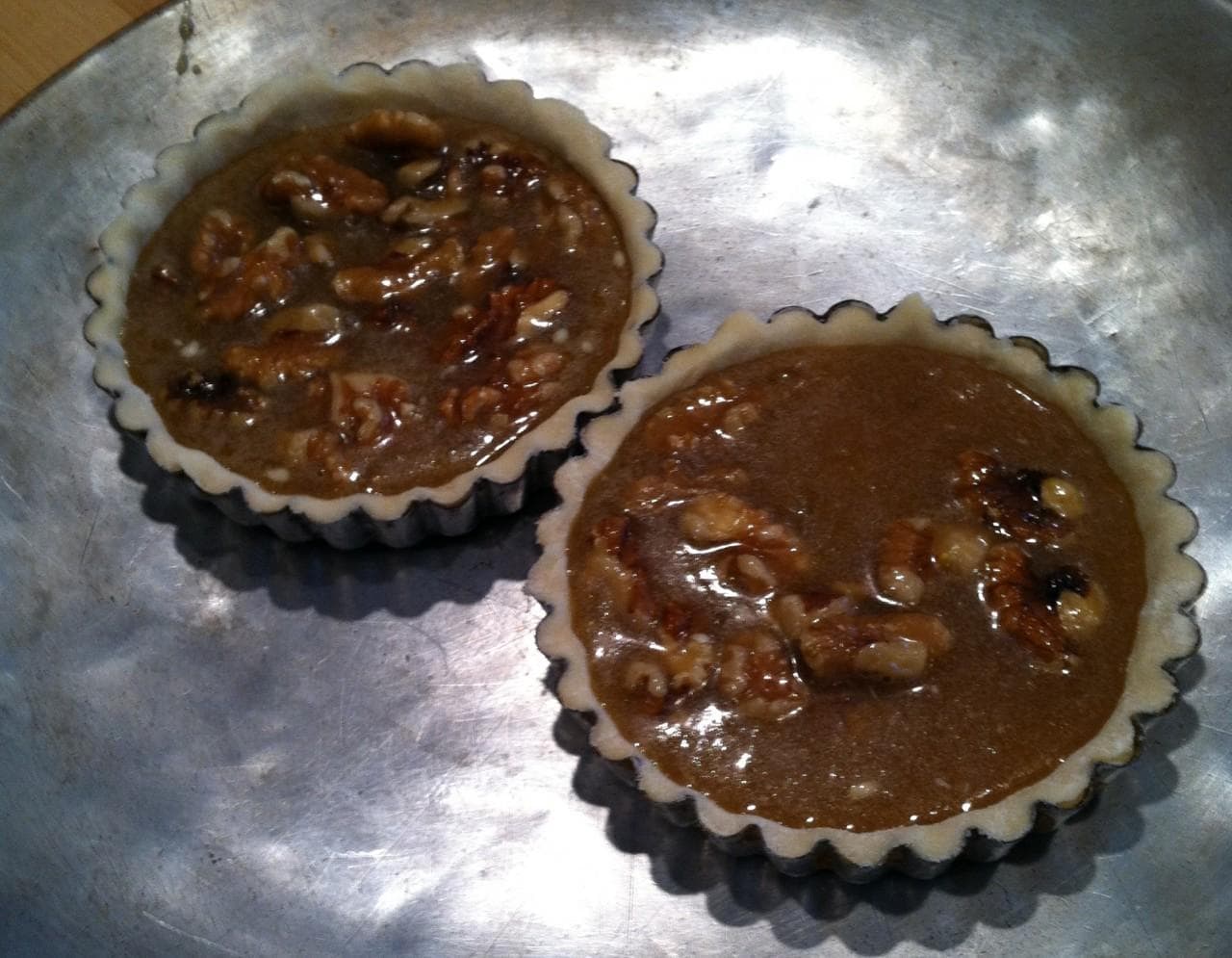 Roll out the pastry and line a round 9-inch tart pan or 4 small tartlet pans. Place on a cookie sheet.