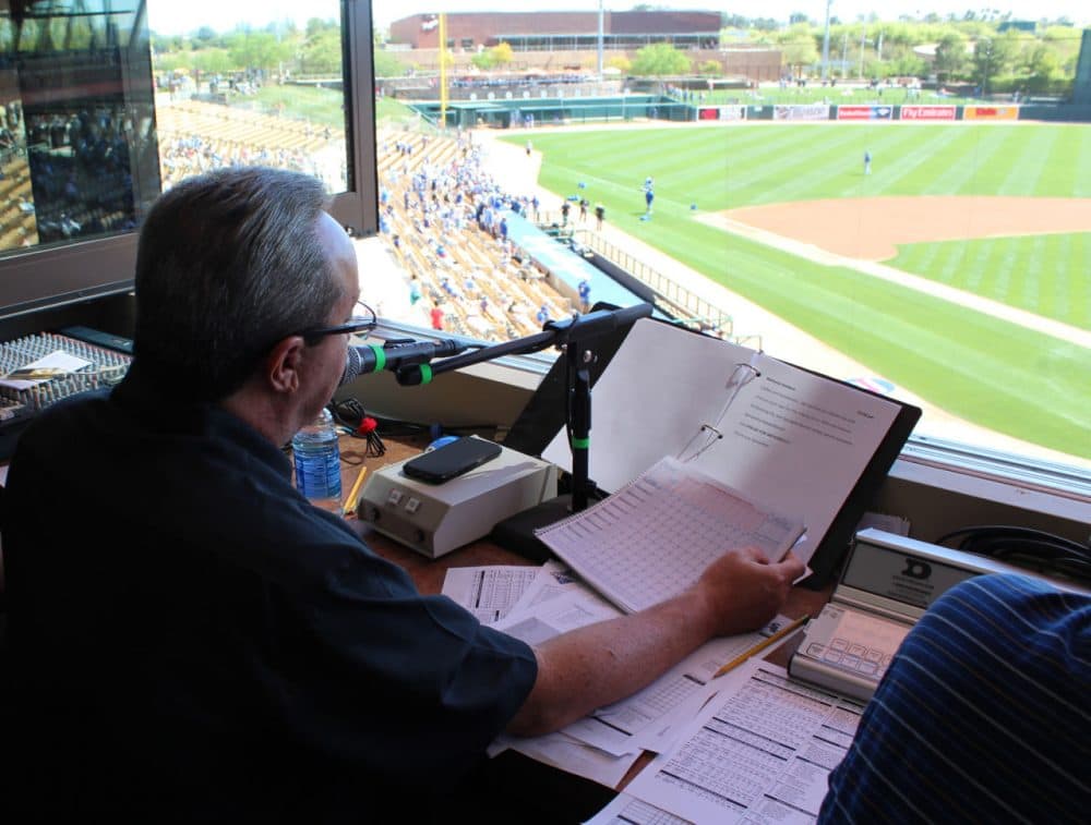 Baseball's opening day is coming up on Sunday, but fans have been getting early taste of the action at spring training. At the Cactus League in Arizona, the regulars play and new faces from the minor leagues get to prove their worth. That ever-rotating lineup is just one challenge public address announcers face in the stadium’s press box. But as Casey Kuhn from Here & Now contributor KJZZ found, that voice belongs to some of the sports' biggest fans.