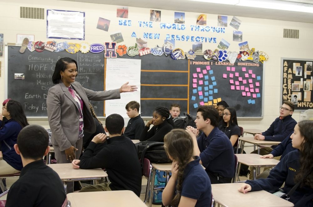 Jahana Hayes, history teacher at John F. Kennedy High School in Waterbury, Connecticut. She was named 2016 National Teacher of the Year by the Council of Chief State School Officers.