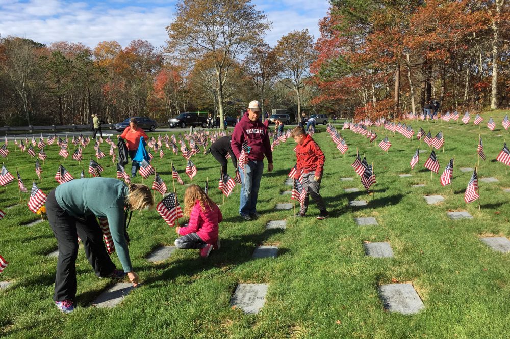 It took the volunteers only a couple of hours to place American flags on each of the nearly 60,000 graves for Veterans Day.