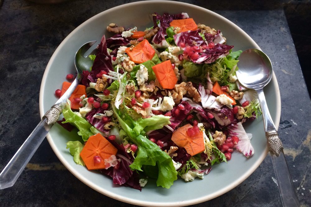 Chicory Salad With Walnuts, Blue Cheese, Persimmons And Pomegranates