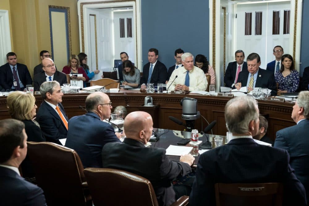 House Rules Committee Chairman Rep. Pete Sessions (center) (R-Texas) chairs a meeting of the House Rules Committee meeting to set the rules for debate and amendments on H.R.1628, the American Health Care Act, on Capitol Hill, March 22, 2017 in Washington. A vote on the Republican-led health care bill is tentatively scheduled for Thursday in the House. (Drew Angerer/Getty Images)