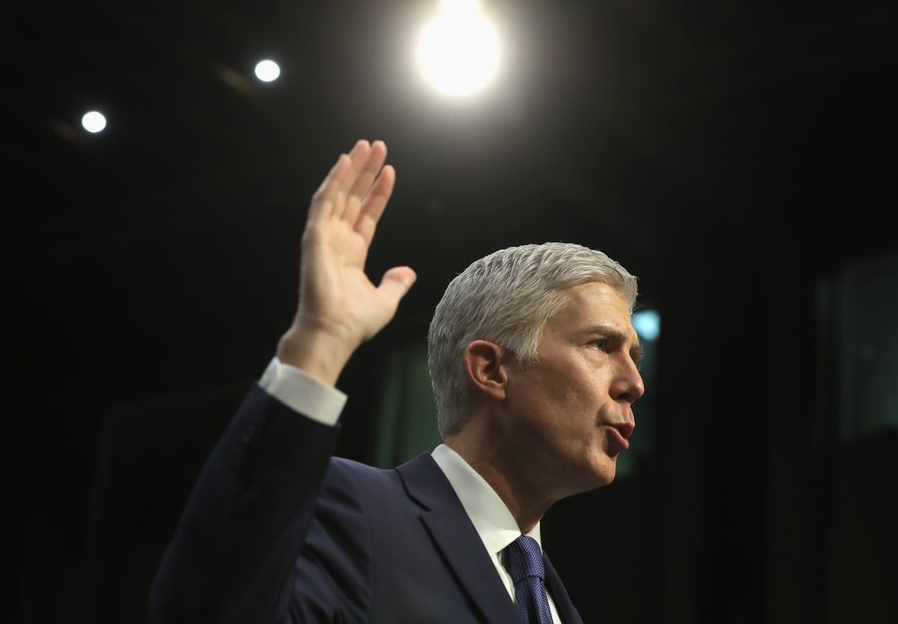 Judge Neil Gorsuch is sworn in on the first day of his Supreme Court confirmation hearing before the Senate Judiciary Committee on March 20, 2017 in Washington, D.C. (Justin Sullivan/Getty Images)