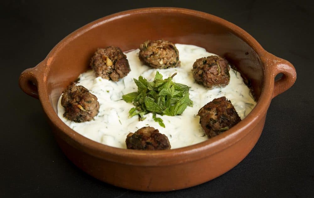 - To serve, spread the yogurt sauce onto a serving platter and top with the warm meatballs. Scatter with the walnuts, if using.