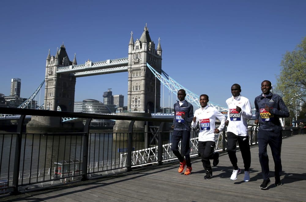 Here & Now's Alex Ashlock (@aashlock), who covered the Boston Marathon and will be following the action in London, talks with host Lisa Mullins.