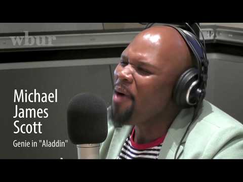 Michael James Scott (@iamMJScott), who stars as the Genie, talks with Here & Now's Jeremy Hobson about following in Robin Williams' footsteps, some of his favorite numbers to perform and growing up in a musical family.