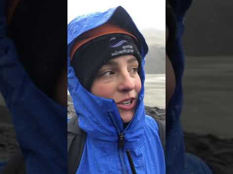Standing by a gray lake on a black beach of broken volcanic rock in the pelting sleet, the Sólheimajökull glacier guide gestures to the blue ice in the distance. She explains that only 10 years ago, the glacier stood where we did. Since then it's receded about 800 meters, roughly the distance of eight football fields.