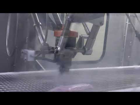 "This is a water cutting machine,” supervisor Halldór Asbjörnsson explains. “In the front of the machines, we have an X-ray machine that takes pictures, finds the bone in the fish. We use a water jet to cut the fish.”