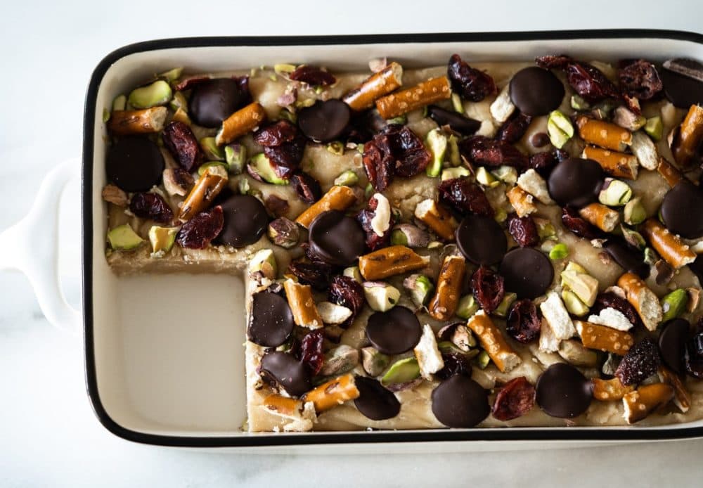 This is an unrepentantly sweet treat, but there’s a balance in this fudge that is just perfect. The butter and caramel notes of the maple give it depth, the bitterness of the chocolate and the tartness of the cranberries cut through the sweetness, and the chips/pretzels bring a delightful salty crunch to the party. The silky yet firm texture of fudge is also unique and uniquely American, like maple syrup. It’s as if they were made for each other.