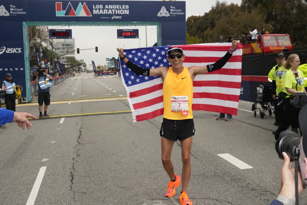 Here & Now's Deepa Fernandes speaks with Hosava Kretzmann about being the first American and sixth person to finish the 2023 Los Angeles Marathon.