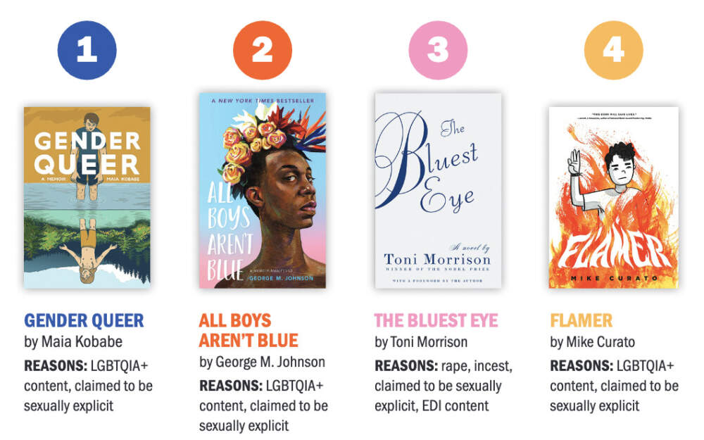 Most of these books deal with race, sex education, or gender identity, such as "Gender Queer" by Maia Kobabe. And some of them are literary classics, such as Toni Morrison's "The Bluest Eye."