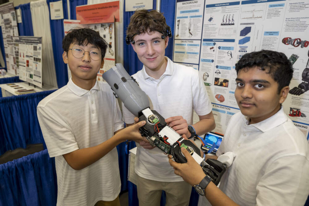 Three high schoolers from Flower Mound, Texas, won a $50,000 scholarship at the Regeneron International Science and Engineering Fair for designing and creating a mind-controlled robotic prosthetic leg for one of their friends.