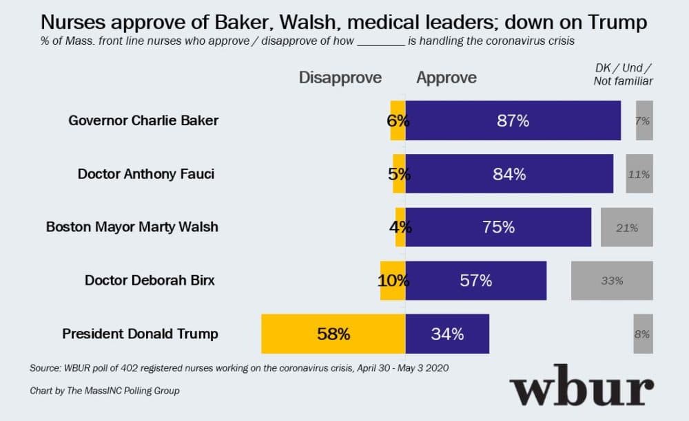 As part of Nurse’s Week, WBUR conducted a poll of 402 Registered Nurses in Massachusetts who were working on the front lines of the coronavirus pandemic.