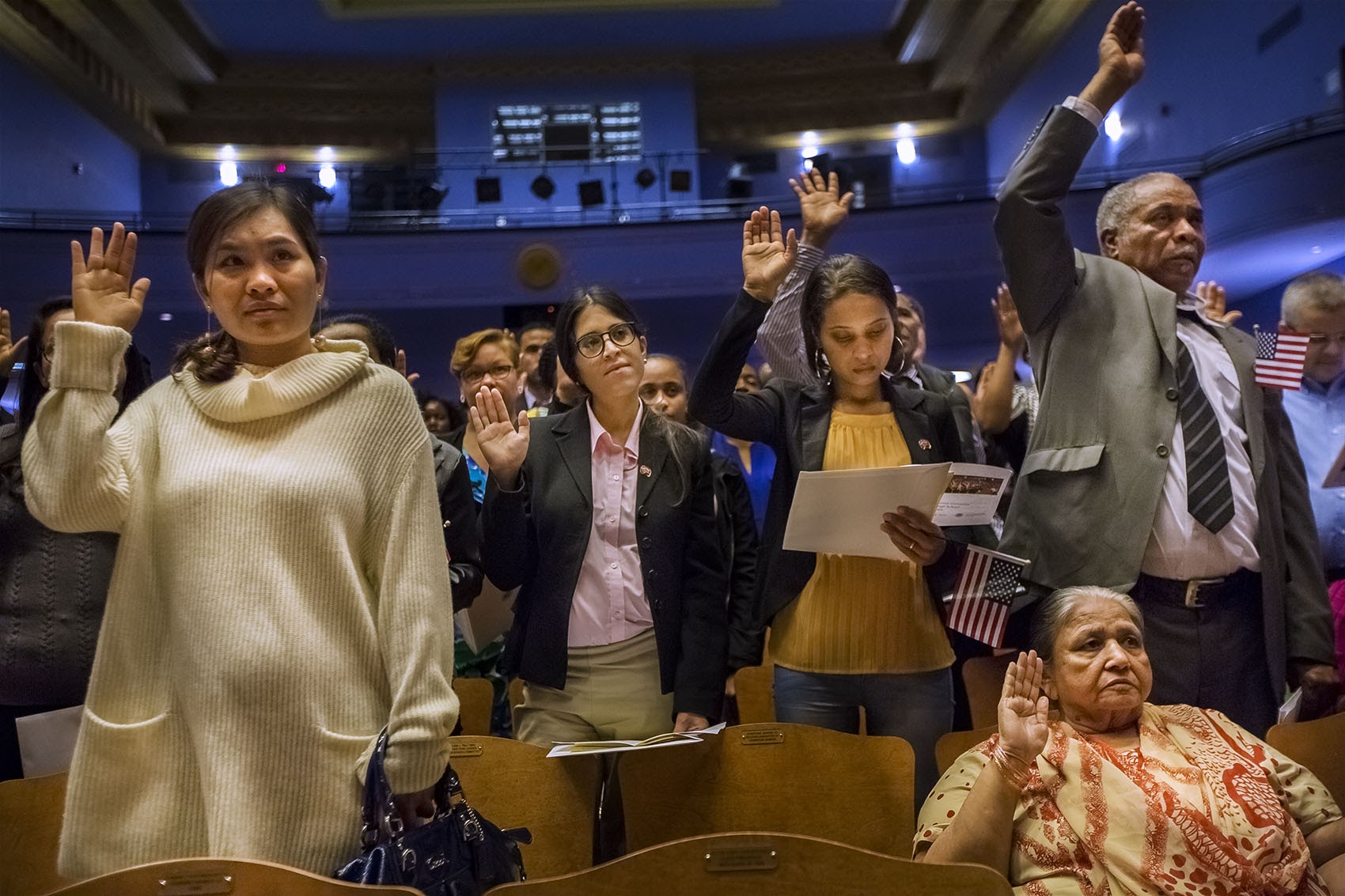 In a time of heated political rhetoric, much of it directed at immigrants and refugees, the naturalization ceremony in Malden felt like a celebration of the immigrant identity.