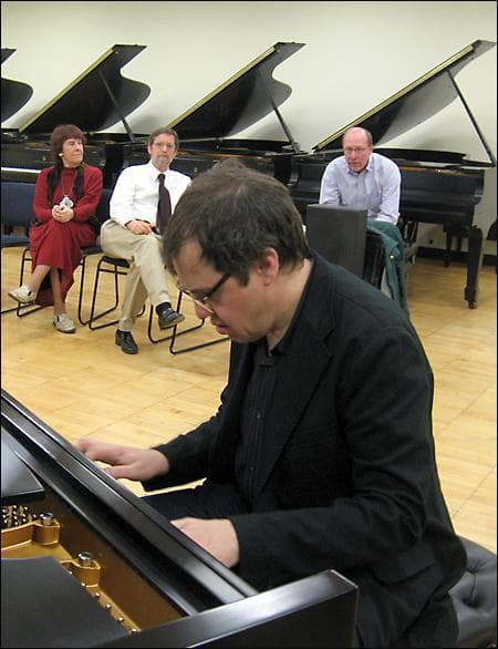 Next in line to test pianos is Bruce Brubaker, the chair of the NEC's piano department. He says he thinks every major venue and most music schools go through such a process periodically. Or they should, especially at a high-profile venue such as Jordan Hall, which hosts great musicians from all over the world.