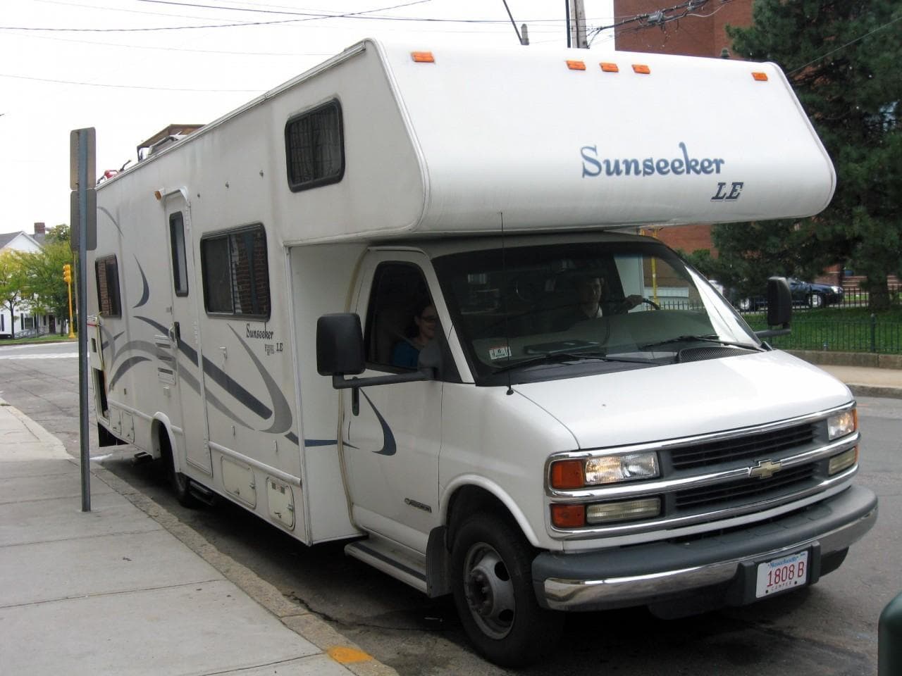 Jeff Trull is behind the wheel of a massive camper with green curtains and beige carpeting and $140,000 worth of scientific equipment inside. It's a laboratory on wheels. Each week, he and another Tufts University graduate student, whom he calls his "co-pilot," drive this RV up and down the streets of Somerville collecting pollution data.