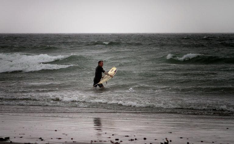 WBUR’s Jesse Costa is on Nantasket Beach in Hull, where one surfer was taking advantage of the storm Sunday morning.