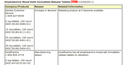 I asked about the confusing finger-pointing and he suggested I check out the FDA's Website on shortages: "They cite 2010 and 2011 as record years for drug supplier shortages, so the ADHD situation is part of a larger issue," he wrote.