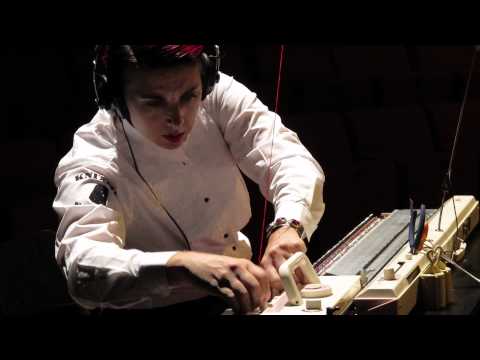 About an hour into the show Latta learns just how unpleasant this kind of labor can be. She stops working and heads backstage to figure out what to do about her hands. Blisters have formed — and popped — because the carriage on her knitting machine doesn't quite fit. It's causing resistance, hence the painful blisters.