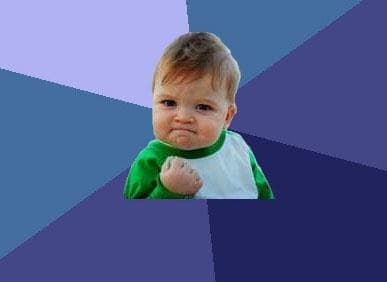 The Success Kid meme. Text on the top customarily indicates an action, and the corresponding text on the bottom reflects the resulting success, often serendipitous. (Courtesy of quickmeme.com)