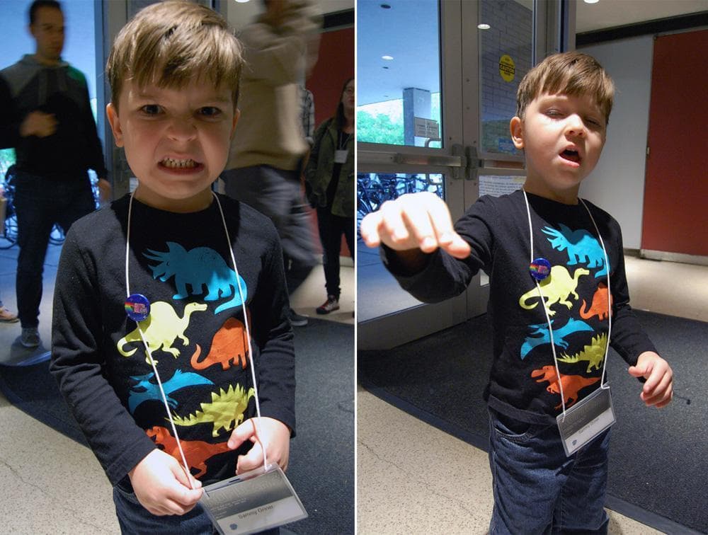 Five year old Sammy Griner, the face of Success Kid, posing as two of his favorite scary creatures: a werewolf and a zombie. (Aayesha Siddiqui/WBUR)