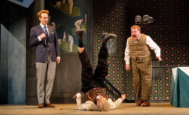 But you needn't study the past to appreciate any of Richard Bean’s adaptation — though since the hijinx are set in 1963 Britain, a grounding in the music of the English Invasion will bring additional smiles to your face. We’re in Brighton, to be precise, where a working-class bloke has signed on with two different masters who don’t know he’s double-dipping. As he mixes up his assignments from each and tries serving them both dinner in a local inn the farce just keeps on upping the ante.