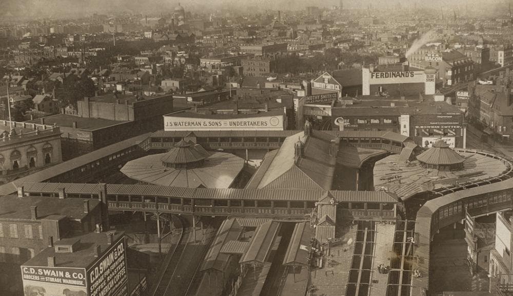 Buses now roll in and out of Dudley Station — 35,000 people travel through here every day. There was a time when an elevated rail platform on the Orange Line was part of this important transportation hub, and the Ferdinand Building was part of its identity.